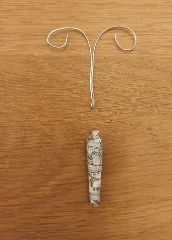 Maak vervolgens voelsprieten van ijzerdraad. Vouw het ijzerdraad eerst dubbel, zodat je twee gelijke uiteinden hebt. Buig de uiteinden rond en steek de voelsprieten in het lichaam.